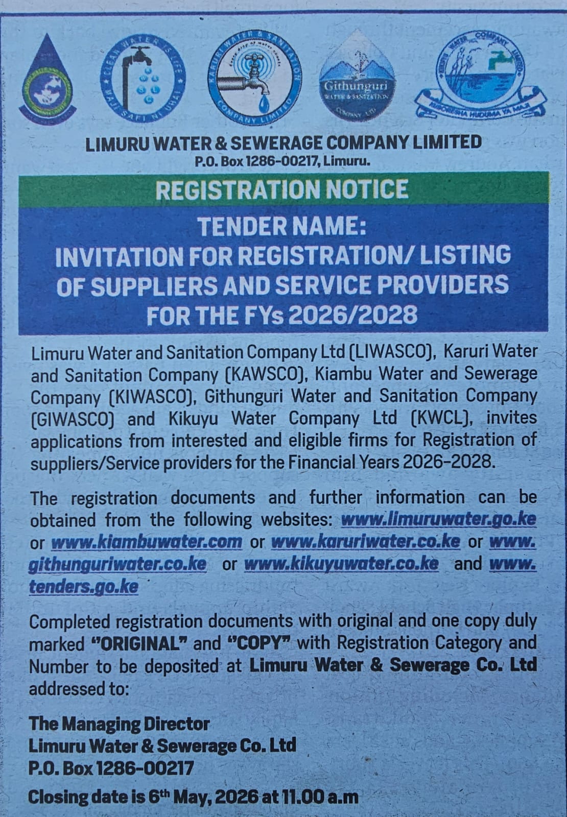 Tenders Tenders Tenders Pre-Qualification 2023-2025 Invitation for registration/listing of suppliers and service providers for the FYs 2023/2025.